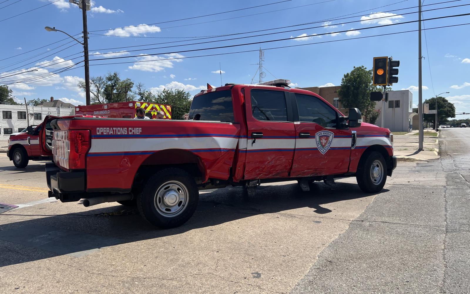 This happened this afternoon around 4:30 p.m. when a white Lexus SUV ran a red light on West Beauregard Avenue, colliding with a San Angelo Fire Department vehicle at the intersection with Randolph Street.