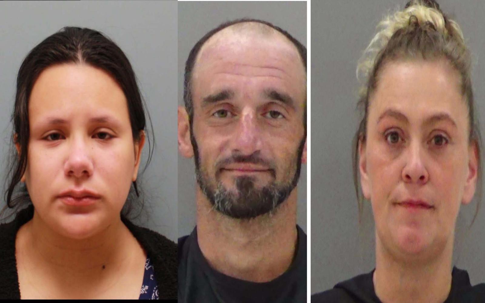 From left to right: Destiny Campos, Jeremy Fancher, and Marilyn Jennifer Mork. Fancher and Campos are charged with murder in the 2024 death of their infant daughter. Mork, Fancher’s current girlfriend, is charged with hindering apprehension.