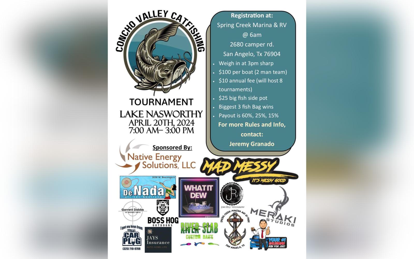 SAN ANGELO, TX - Concho Valley Catfishing is hosting a tournament set to take place on Lake Nasworthy in April.