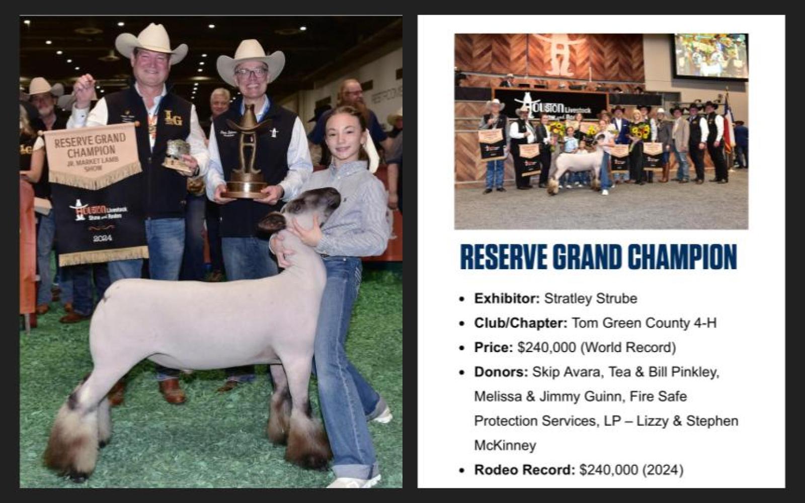 HOUSTON, TX — An 11-year-old from Wall, TX, made history at RodeoHouston after she sold her Reserve Grand Champion Lamb for a record-breaking $240,000.