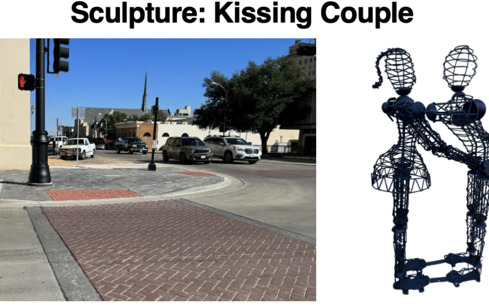 The final piece of the project, the "Kissing Couple Sculpture," created in collaboration with "West Texas Guidance" for suicide prevention.