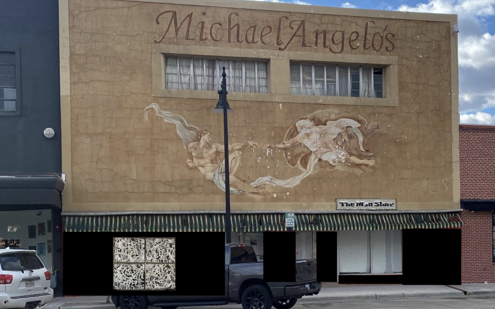 A "Chess park" and a mosaic mural on the Man Store building are also part of the extensive art installment.